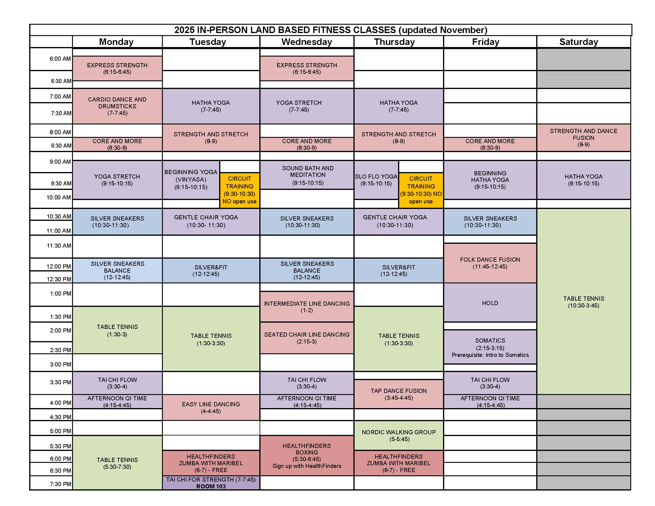 Weekly Land Fitness Schedule